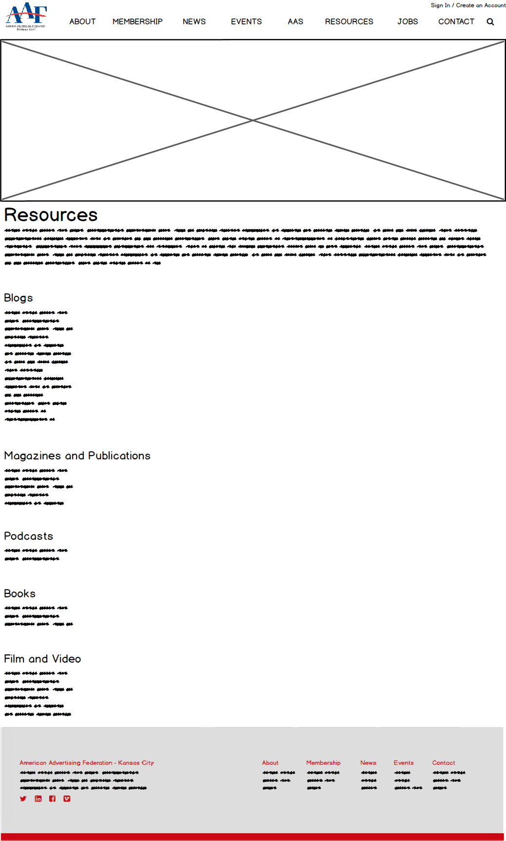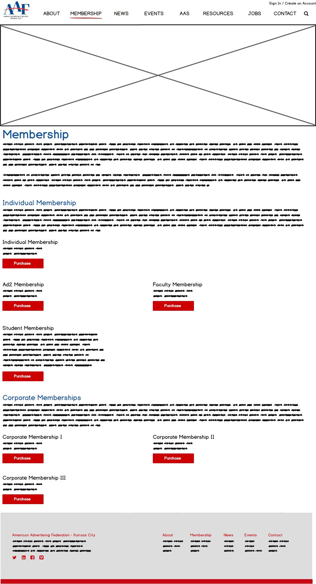This project was given to me in UX and Analytics class in 2019. The assignment was to wireframe the American Advertising Federation of Kansas City's website. This assignment taught me how to use Balsamiq, the software program, and helped polish my wireframing skills. This exercise also helped me see the inconsistencnes in AAFKC’s website and how they could be changed going forwards.